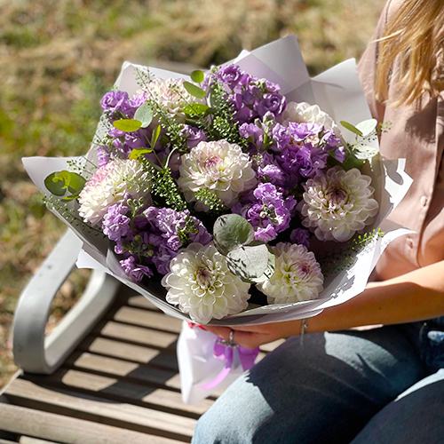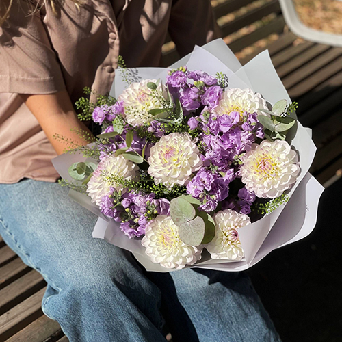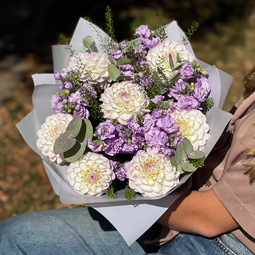 Букет "Совершенство" из георгин и ароматных маттиол